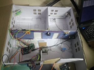The whole project is operated using two arduinos, one for Door locking system and sensing MQ2 Sensor data and the other is used to control the home appliances using Bluetooth application and the final functionality is nodeMCU ESP8266 Wifi module which is used to transport the data sensed by DHT11 Temperature Sensor to cloud/Server.